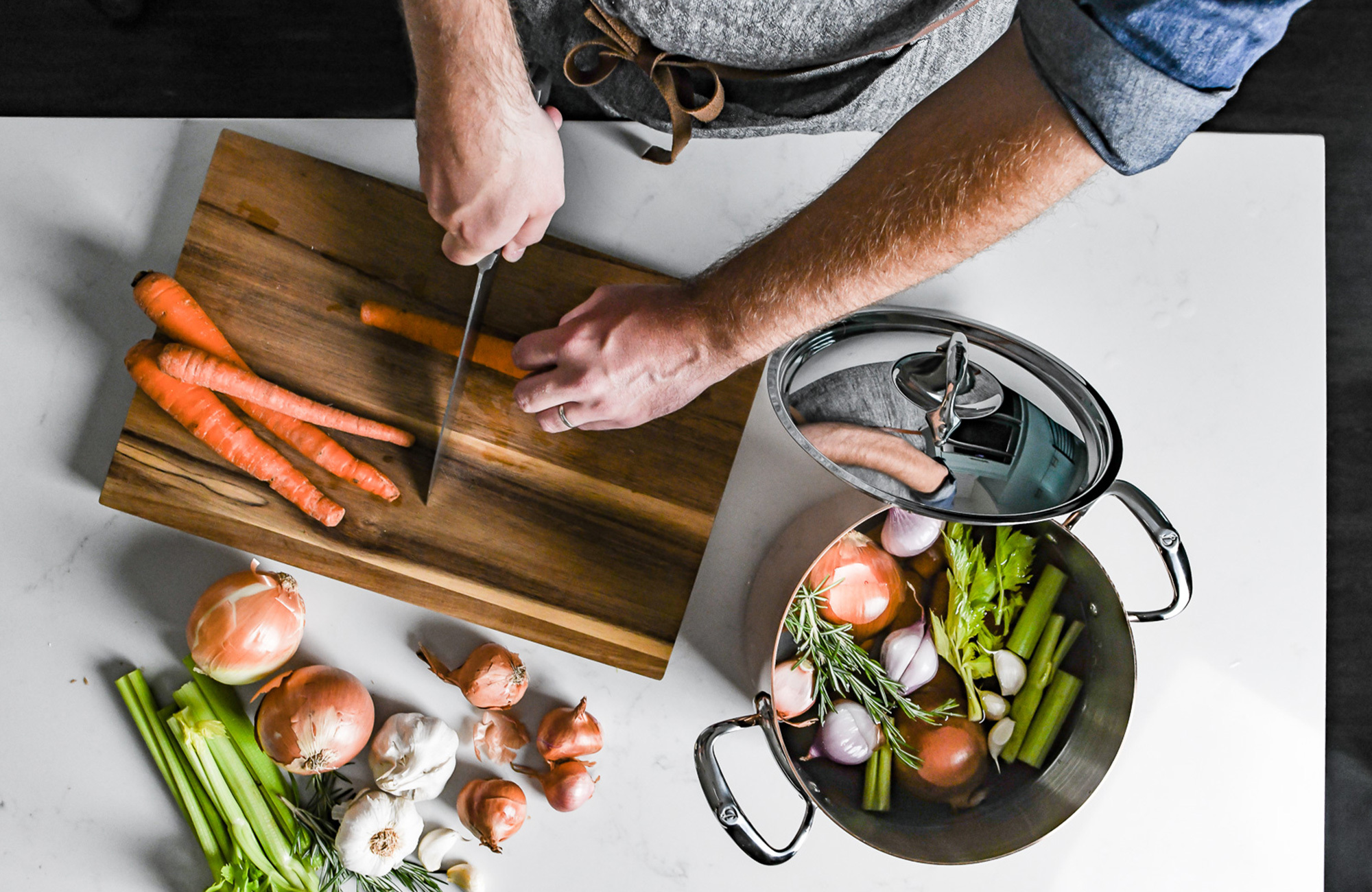 Grill, roast, stew, juice and sauce reduction, cook by immersion, rewarm, vegetable juliennes, cubes or chips, making mousses, puff, canelés, macarons, pancakes, tarts...each purpose, each result its material. Cook like a Chef with de Buyer.