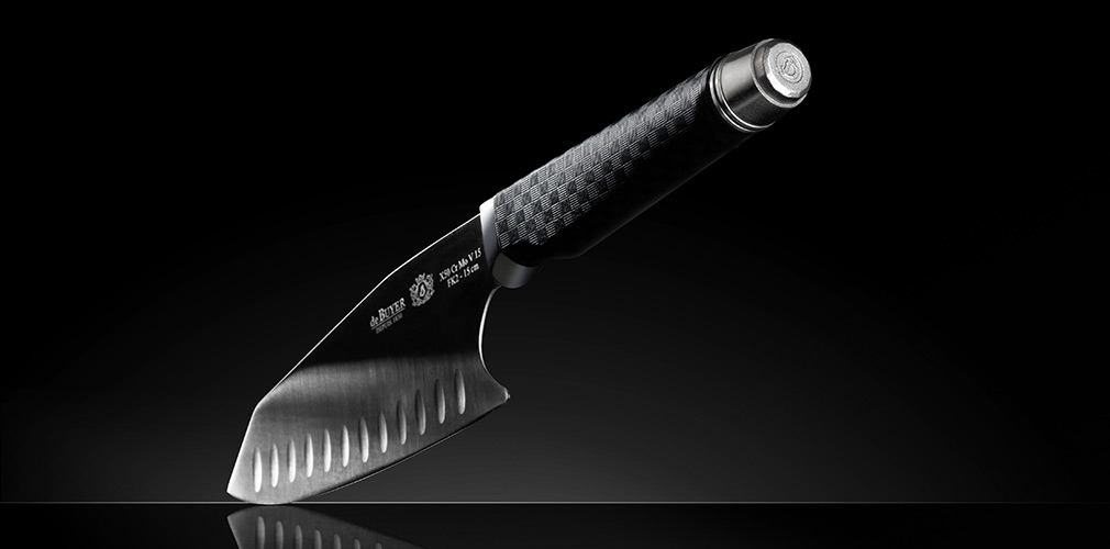 The blade is also made of the robust German X59CrNoV15 stainless steel with a fine Japanese geometry for improved sharpness of the edge.The ergonomic handle is made of carbon fiber composite with non-slip texture grip. It features a calibrating system: find your ideal balance with the innovative adjustable counterweight.