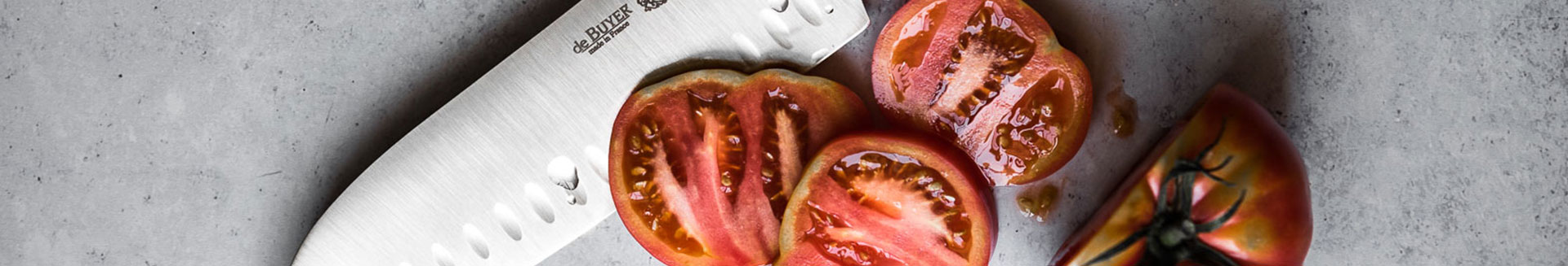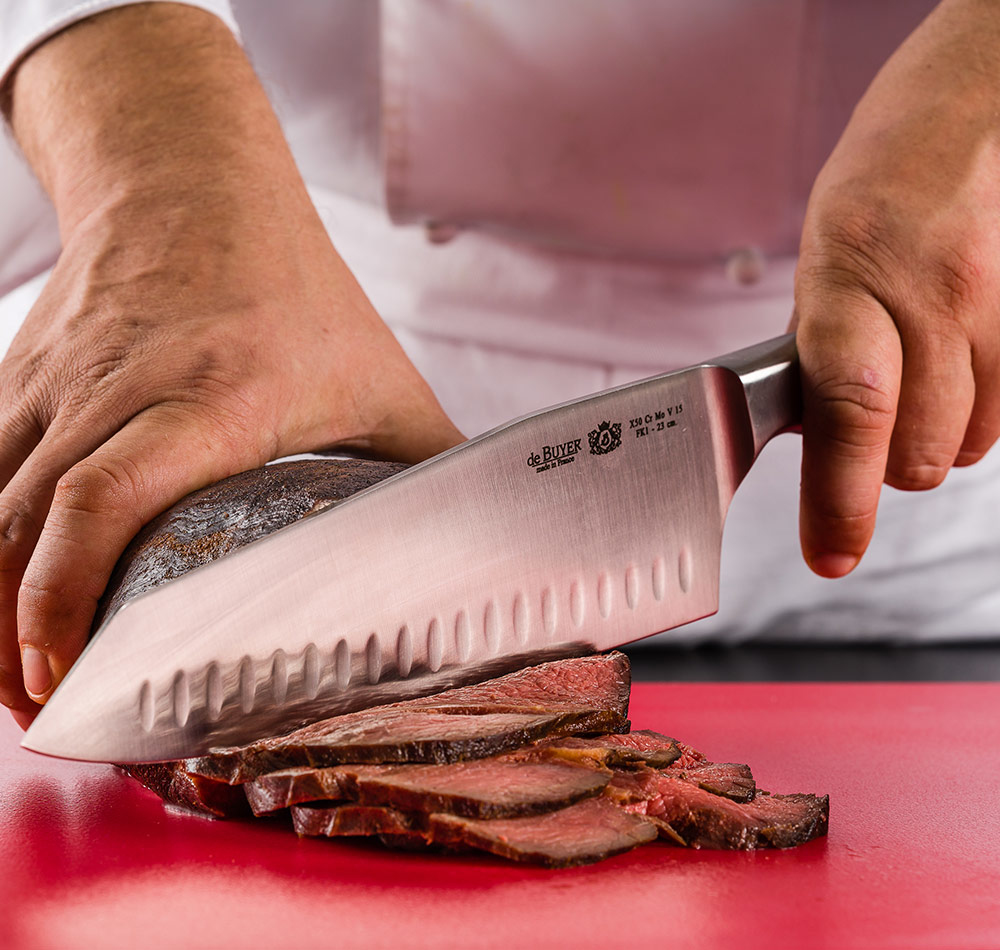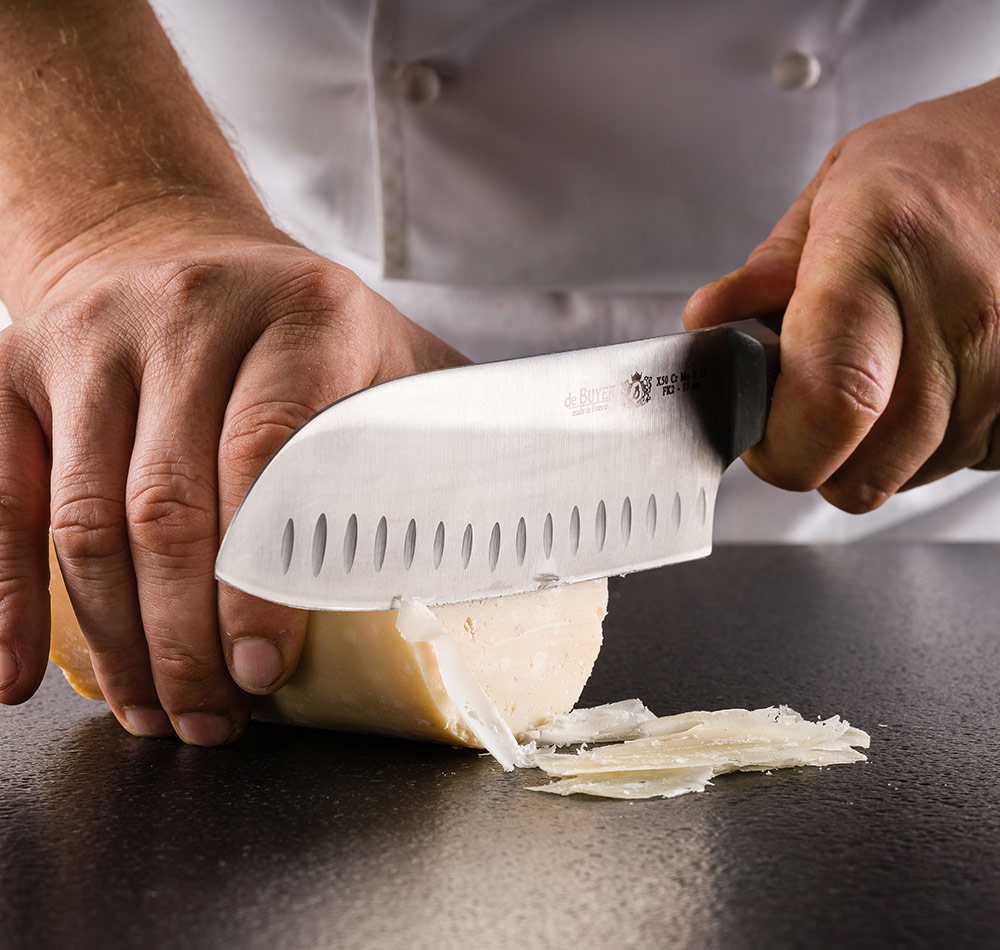 De Buyer has carefully analysed French and Japanese knife design. The findings were clear: Japanese knives have a perfect cutting edge while French knives are outstandingly solid. De Buyer's knives differ obviously from any other knives by combining these two key elements and know-how.