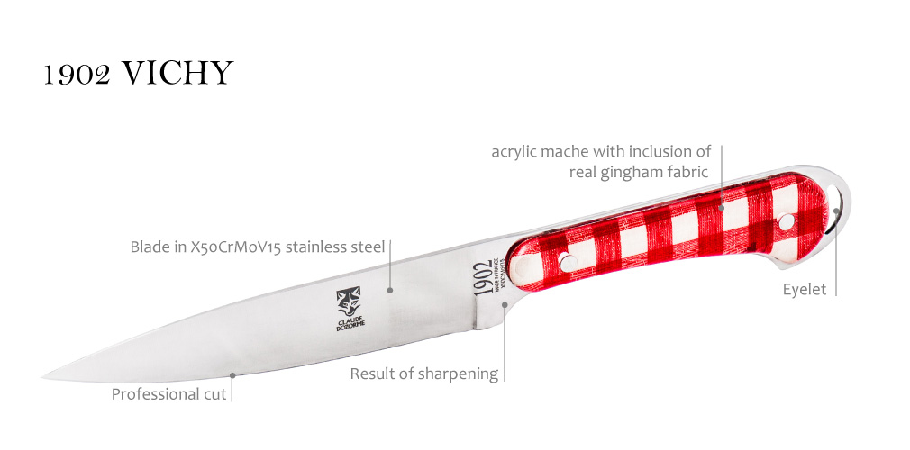 With its broad and sharp blade, it is a multi-purpose knife used for a variety of kitchen tasks. Ideal for cutting meat, dicing vegetables, disjointing some cuts, slicing herbs, chopping nuts.