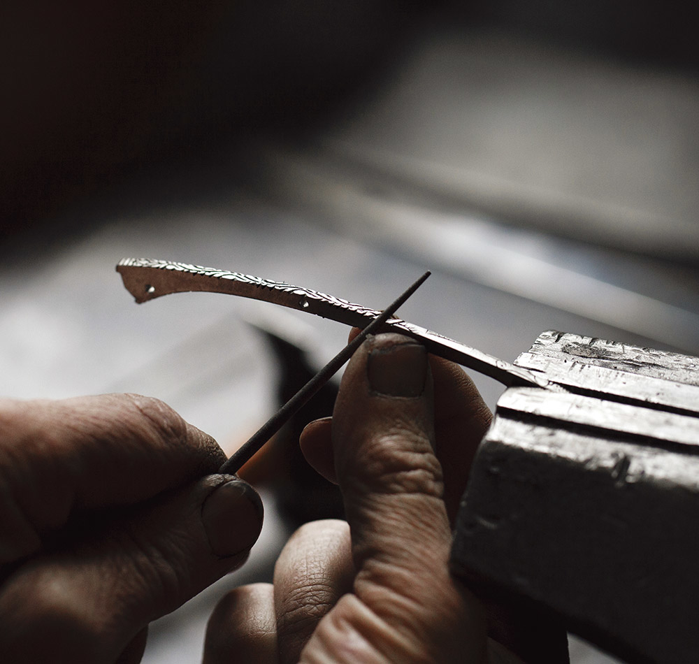While Claudine Dozorme has invested over the years in new technologies, CLAUDE DOZORME follows the same steps of steel cutting, grinding, polishing, "guillauchage" and assembly. Among the 45 stages necessary, human hands and artisanal know-how remain at the heart of the crucial steps to deliver those extremely beautiful knives and corkscrews.
