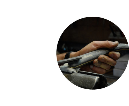 Once assembled, the blade is sharpened to give it its definitive cutting edge.