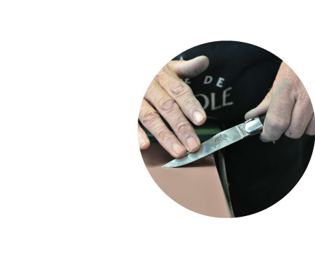 The grinding stage is essential to the sharpness of a Laguiole blade. Nowadays we grind the knives with stones set to the nearest micron, which gives a quality and precision that guarantee a uniform sharpness of the blade.