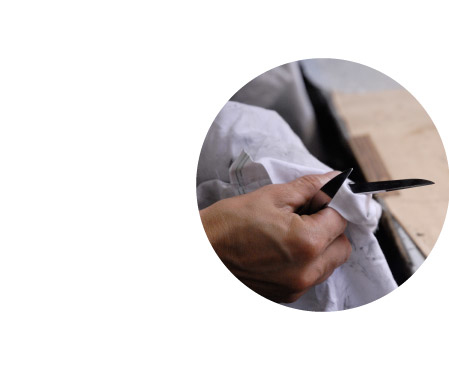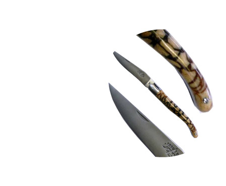 We select the best pieces of wood, horn and contemporary materials such as carbon or mineral acrylic. When we cut a horn in two, the two sides are used on the same knife to assure a visual quality.