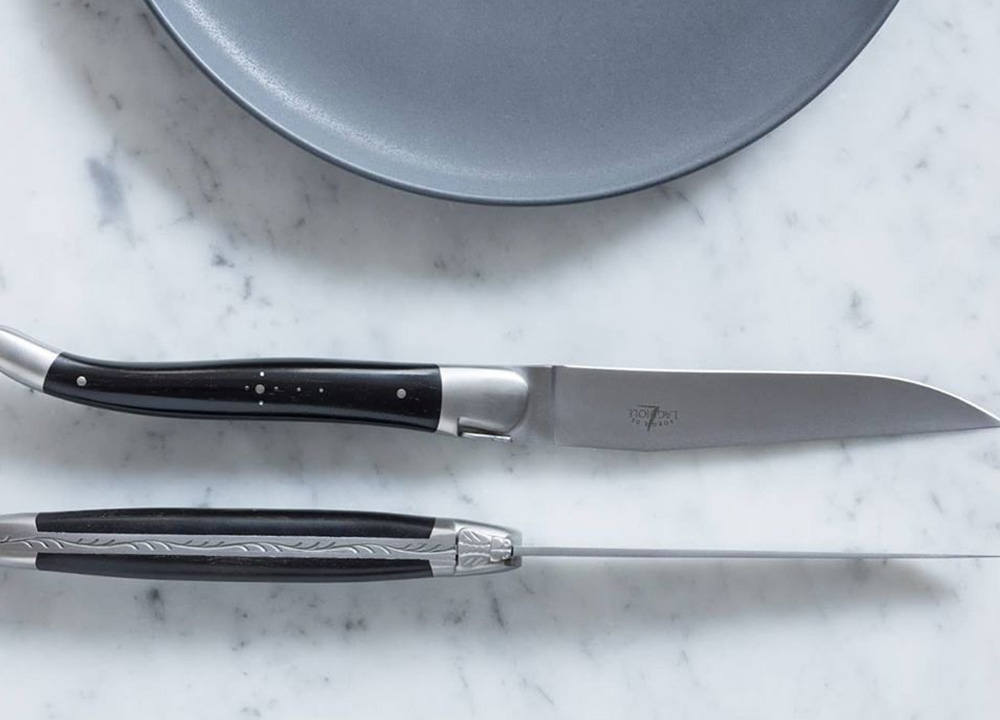 Forge de Laguiole’s unique methods of forging ( bolsters, liners, springs), combined with tempering, give the blade a perfect cutting edge. The T12 steel comes from the Isère region of France.
