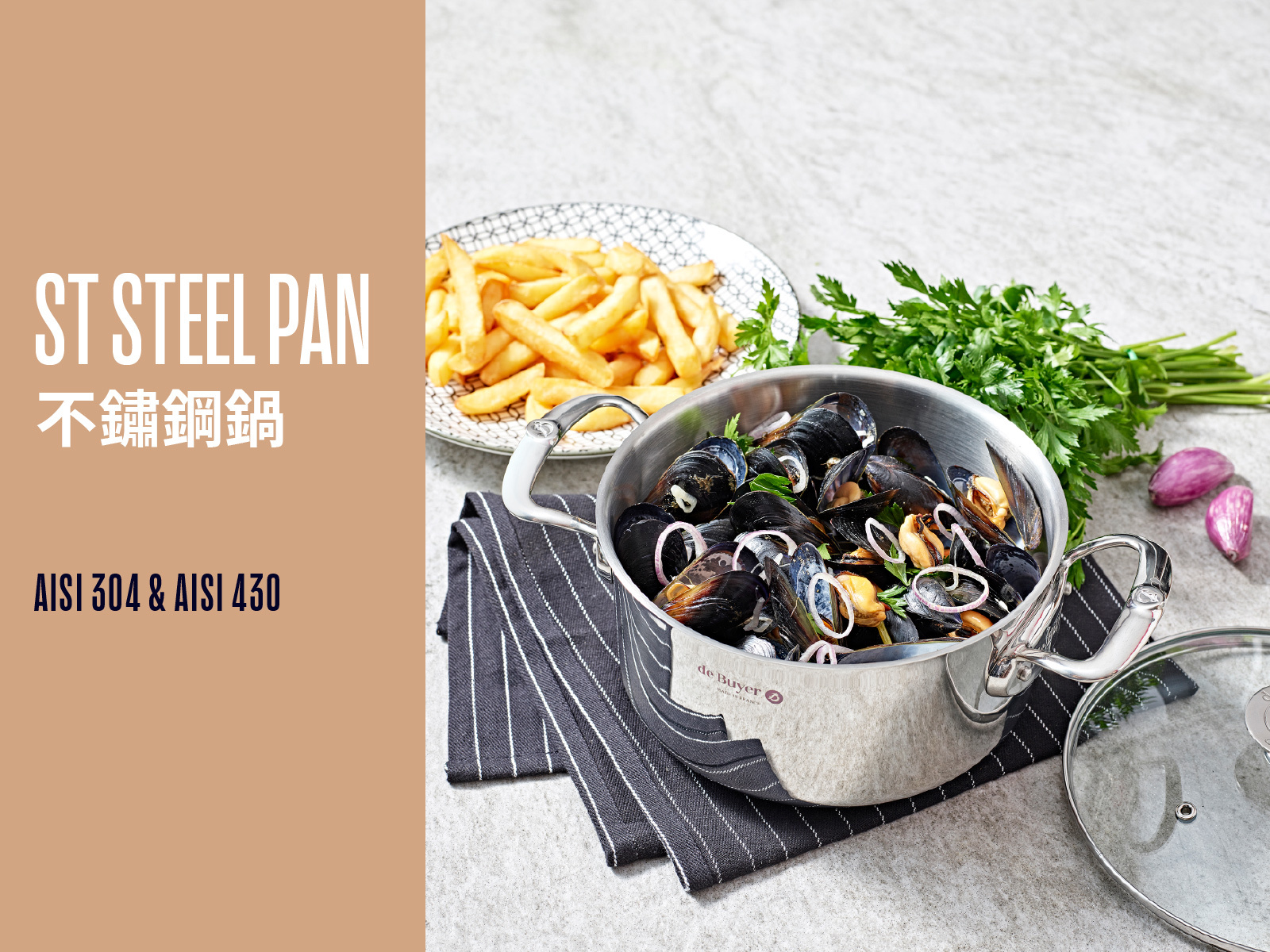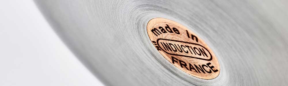AISI 304 is highly corrosion resistant thanks to its 8.3-10% proportion of Nickel. It is used in all de Buyer's collections to shape the pan. But the AISI 304 has a poor thermal conductivity and cannot work on induction. De Buyer compensates this weakness by adding an external bottom made of AISI 430 on its Milady & Prim'Appety collections. AISI 430, ferritic, is magnetic (works on induction) and has a far better thermal conductivity. De Buyer will even add 4 additional external layers of ultra thermal conductivity materials to its acclaimed Affinity & French multilayer collections with results close to copper pans in terms of heat sensitivity and homogenous diffusion.