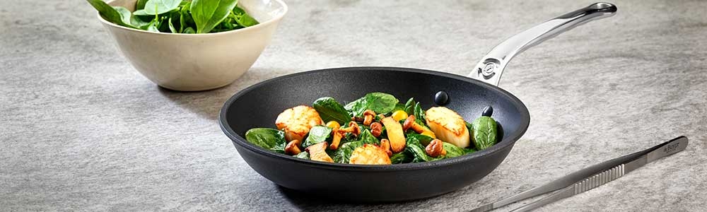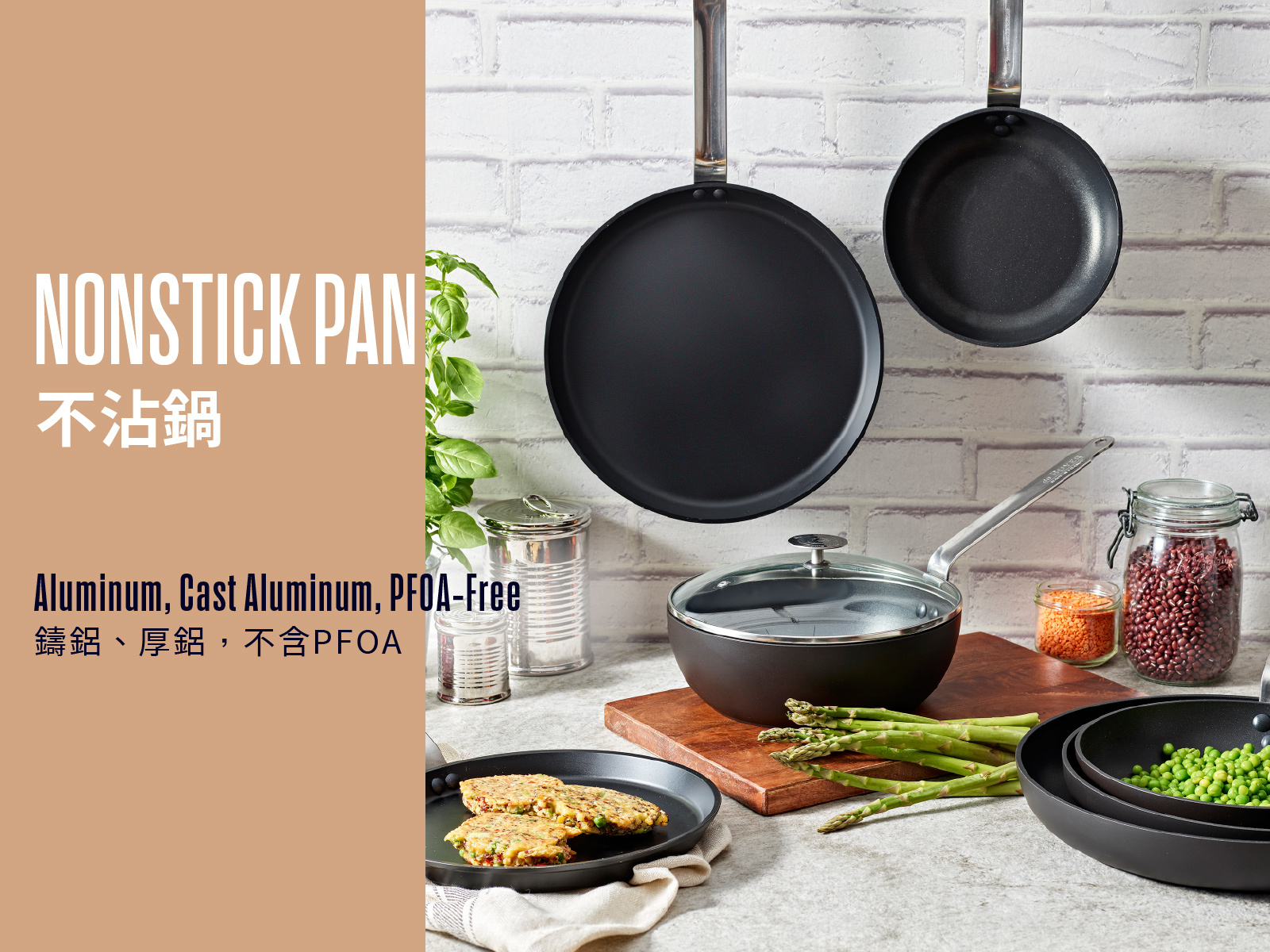 Nonstick coatings have 3 great advantages: their food nonstick properties of course, their ease of wash and their light weight. But they are poor heat conductor compared with iron pans. This is why nonstick pans are usually used by professionals to cook delicate foods (fish, egg…), cook healthy with low fat + to preserve vitamins or re-heat food, at medium or low-temperature cooking. They are not recommended to fry, grill or cook at high temperature. They don't replace your iron pans, stainless steel or copper pans, they complete them. You should always have one at least at hand, so convenient.