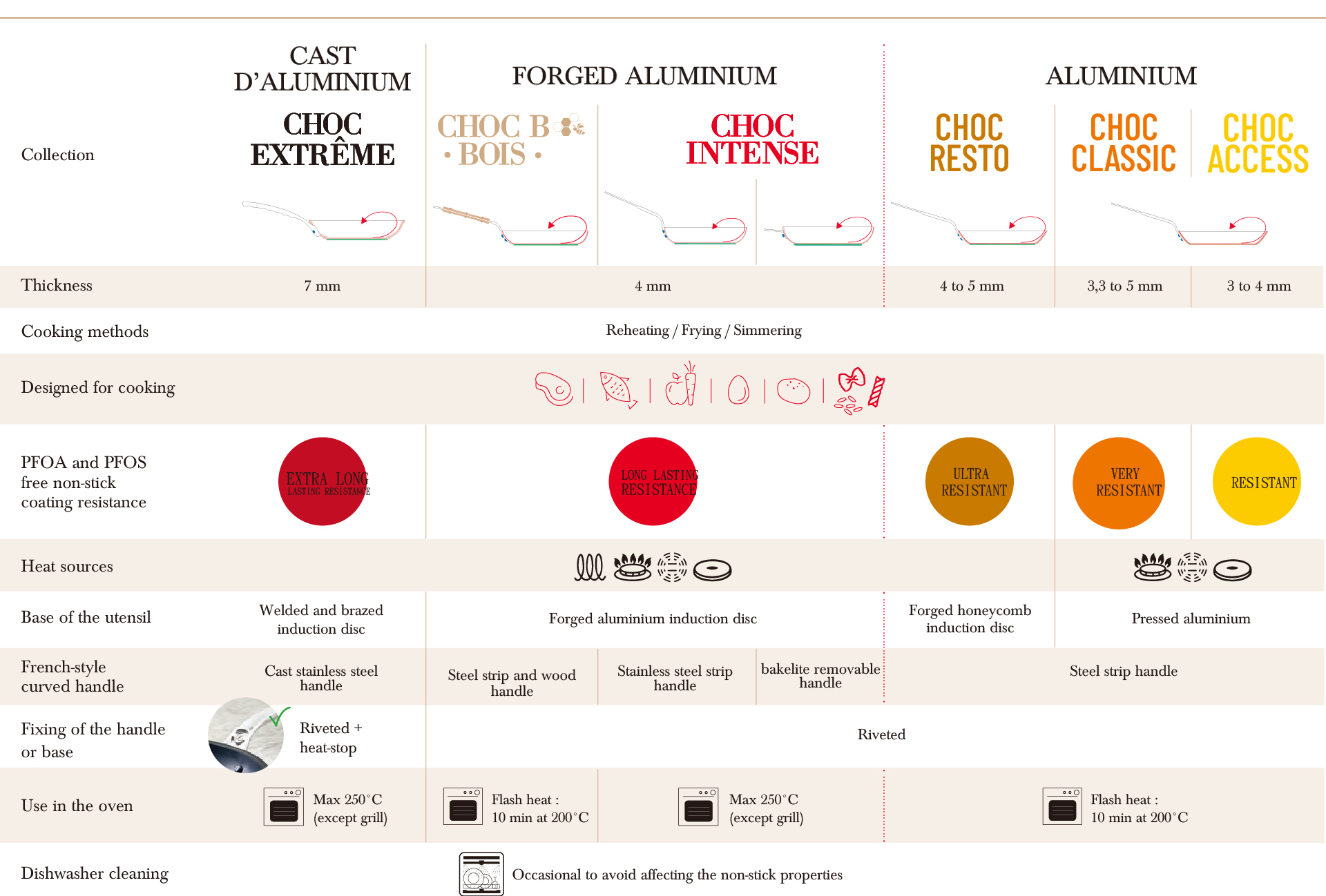 Our traditional copper cookware collections (no induction) in three types of handles: cast-iron, brass or stainless-steel.