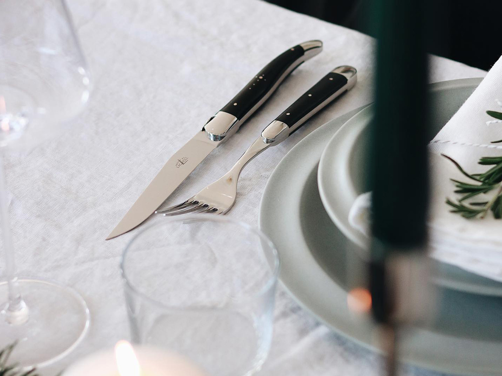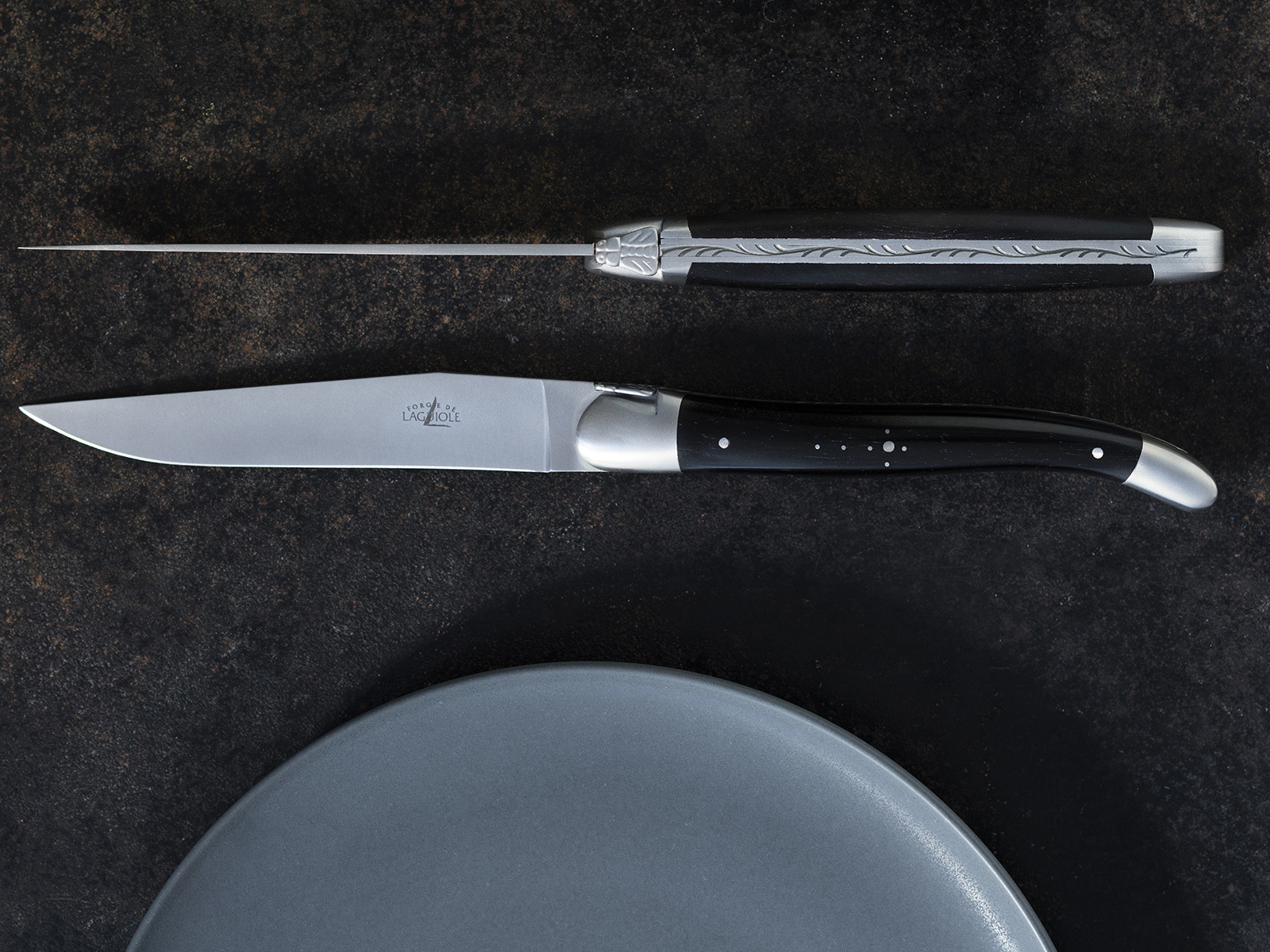 The blades are made from the high-quality French T12 steel, which is exclusively produced for Forge de Laguiole®. They are forged to 1000°C in their workshops forge in Laguiole, France.