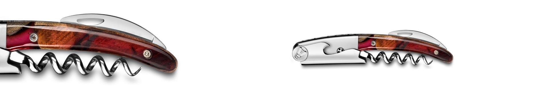 當走過120年歷史位在Laguiole最著名的刀具城鎮,C. Dozorme從未停止將傳統及高科技結合的創新研究。 它是唯一使用 Torx螺絲將握柄固定的酒刀,設計出獨特上粗下細“錐形螺旋針”專利,你可以自行校正鬆緊旋轉下針順手且軟木塞抓力紮實。 除了傳統常見牛角及木柄材質之外, Clos Laguiole系列還推出了大器且獨特的樹脂及稀有的猛瑪象牙(長毛象牙)握柄,此系列所酒刀皆需要45道工序,並由技藝精湛的資深工匠製作。