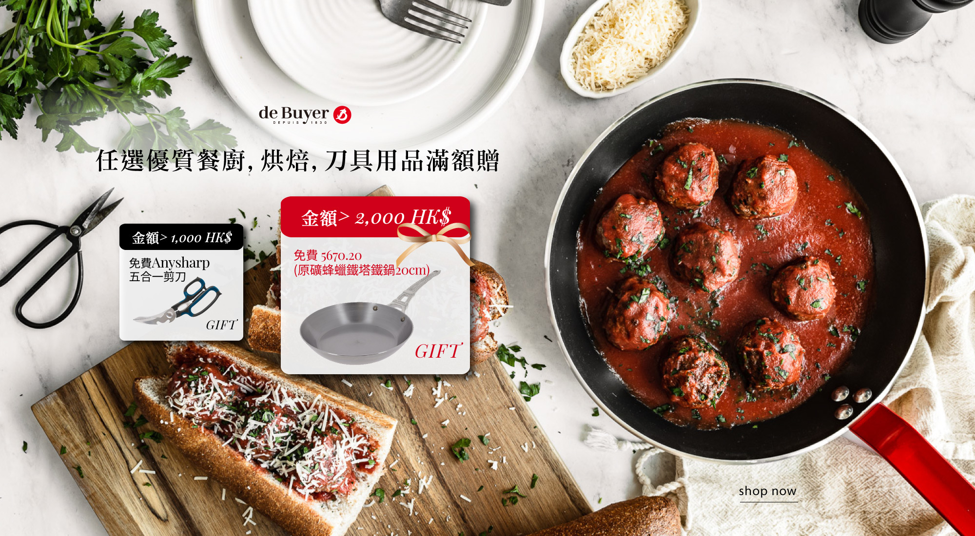 手刀搶限量滿額贈好禮,滿2000$HK送DEBUYER鐵塔鍋20公分